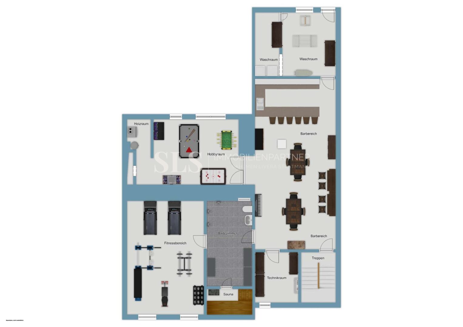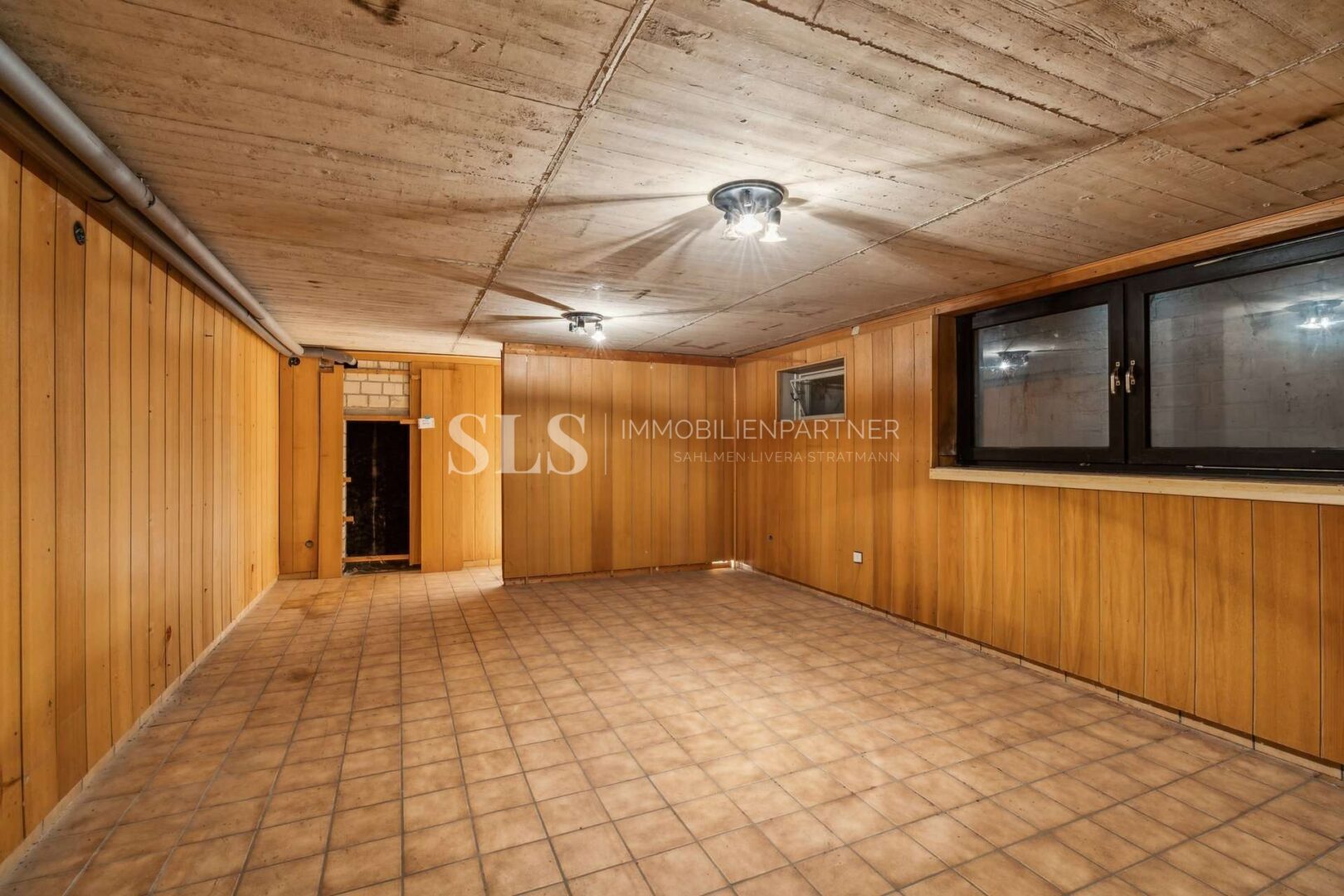 Der Bungalow ist voll unterkellert und bietet dort vielfältige Nutzungsmöglichkeiten. Besonders hervorzuheben sind die eigene Bar, eine Sauna sowie eine Dusche, die den Keller zu einem gemütlichen Freizeit- und Wellnessbereich machen.