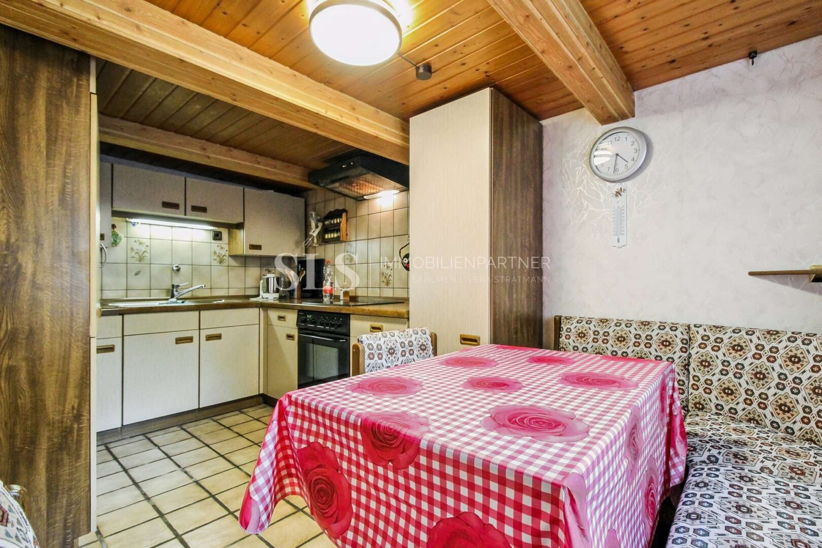 Im Erdgeschoss befindet sich neben den klassischen Wohnräumen ein besonderer Bereich: Ein Raum wurde liebevoll zu einer Hausbar ausgebaut und schafft eine einladende Atmosphäre für gesellige Abende mit Familie und Freunden. Die Deckenhöhe im Erdgeschoss sowie im Obergeschoss beträgt jeweils etwa 1,90 m und unterstreicht den authentischen Charakter des historischen Gebäudes.