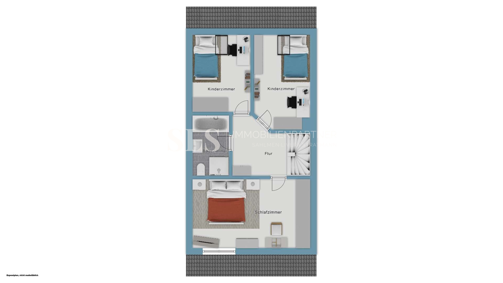 Die Küche ist separat angeordnet und bietet eine solide Grundlage, um sie nach eigenen Vorstellungen modern zu gestalten. Im Obergeschoss befinden sich die privaten Rückzugsräume, die durch ihre ruhige Lage und flexible Nutzungsmöglichkeiten überzeugen. Das bereits modernisierte Badezimmer ist sowohl mit einer Dusche als auch mit einer Badewanne ausgestattet und erfüllt damit unterschiedliche Ansprüche im Alltag.