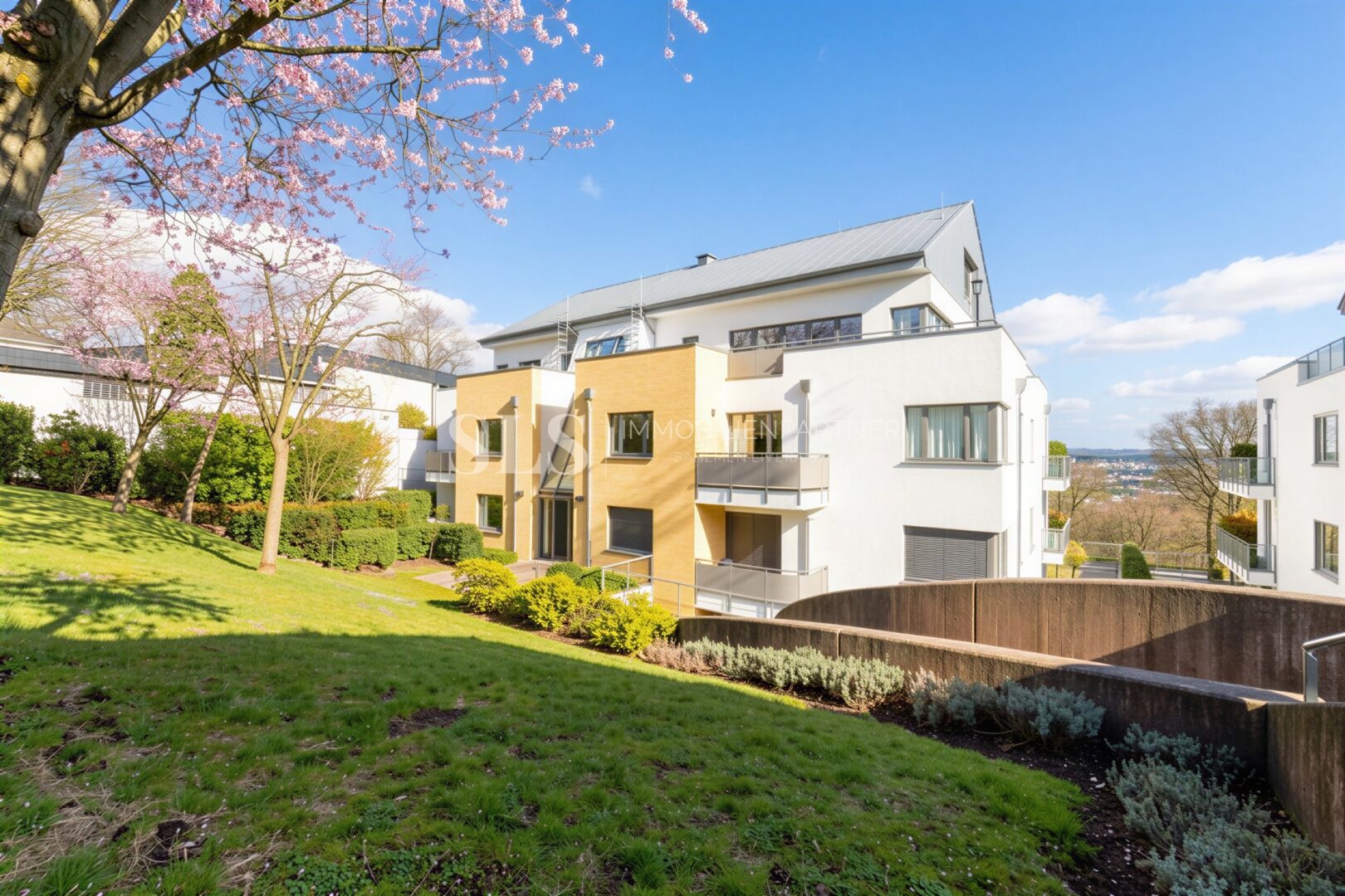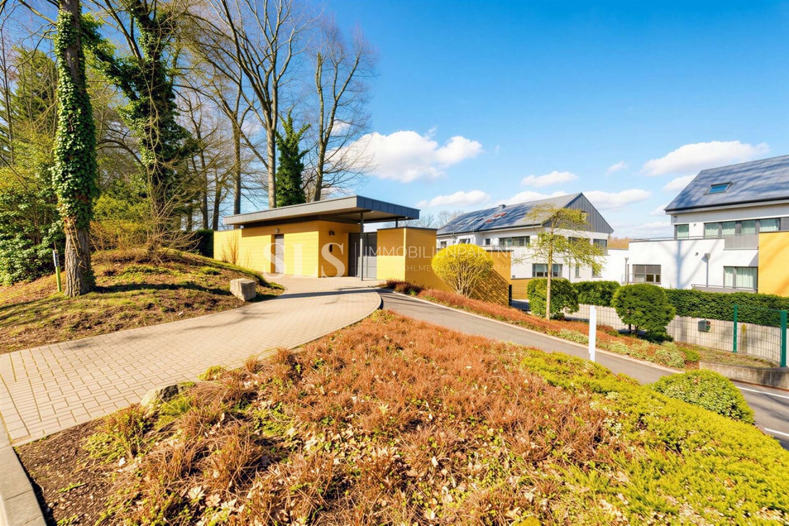 Diese außergewöhnliche Terrassenwohnung vereint Großzügigkeit, architektonische Klarheit und eine Lage, die in dieser Form nur selten zu finden ist. Auf rund 217 Quadratmetern Wohnfläche entfaltet sich ein Wohnkonzept, das sich konsequent an anspruchsvolle Käufer richtet, die Wert auf Raum, Ruhe und ein hochwertiges Umfeld legen. Besonderes Augenmerk wurde auf Privatsphäre und Sicherheit gelegt. Die Anlage ist so konzipiert, dass der Zugang nicht unmittelbar zum Haupthaus erfolgt. Besucher melden sich zunächst über einen vorgelagerten Eingangsbereich mit Klingelanlage an und werden erst anschließend eingelassen. Dieses durchdachte Konzept schafft ein hohes Maß an Ruhe und Diskretion.