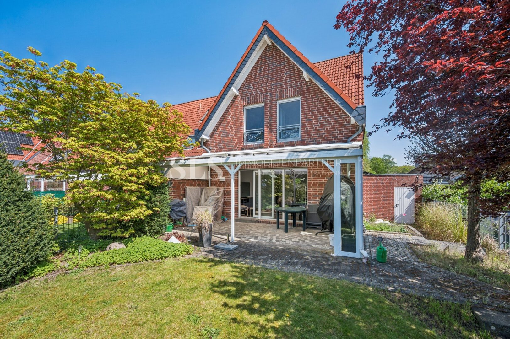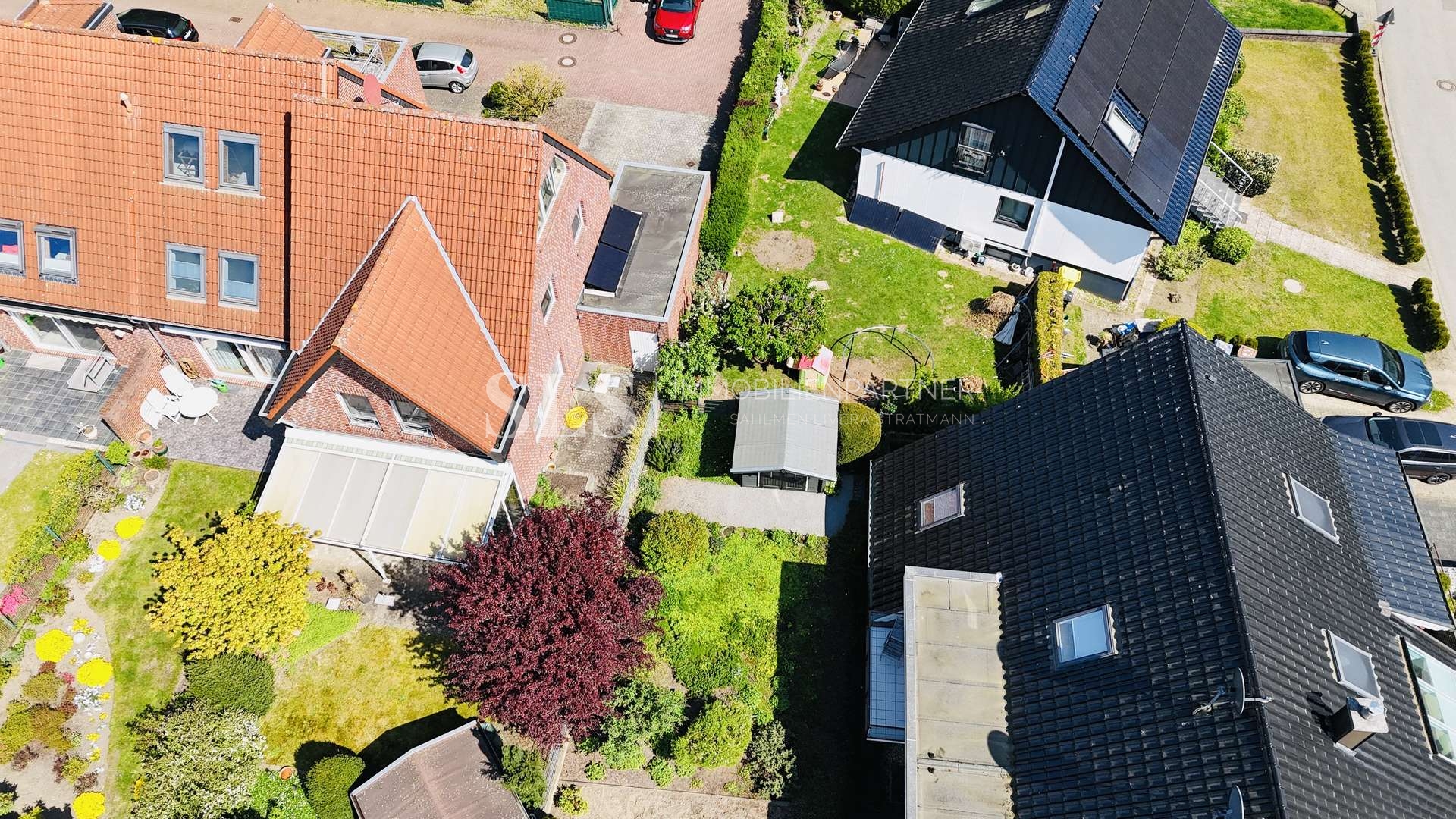Dieses gepflegte Reihenendhaus aus dem Baujahr 2000 vereint genau das, was Familien heute suchen: ein stimmiges Raumkonzept, ein modernes Wohngefühl, angenehme Helligkeit und ein Umfeld, in dem man sich vom ersten Moment an zuhause fühlt. Schon die Außenansicht macht klar, dass es sich hier nicht um ein beliebiges Haus von der Stange handelt. Die ansprechende Klinkerfassade, das solide Erscheinungsbild, die ruhige Position am Ende der Straße und das liebevoll angelegte Grundstück vermitteln sofort ein Gefühl von Geborgenheit, Privatsphäre und Dauerhaftigkeit. Genau so stellt man sich ein Zuhause vor, das nicht nur praktisch ist, sondern auch Charakter hat.