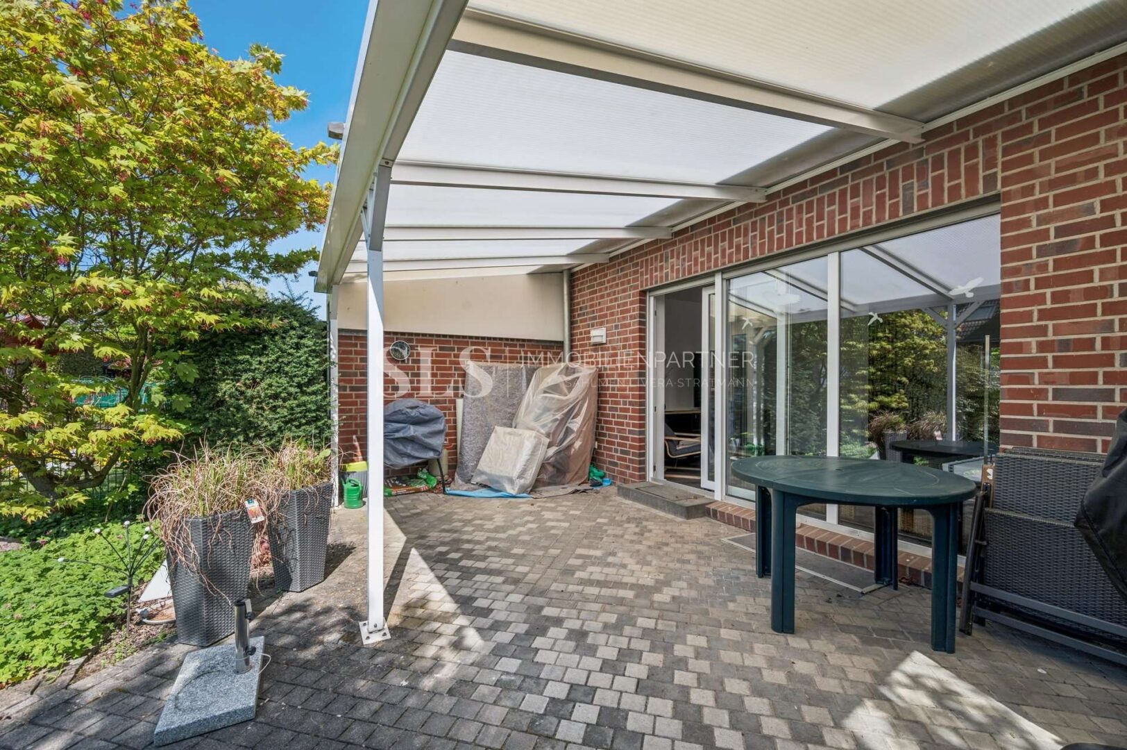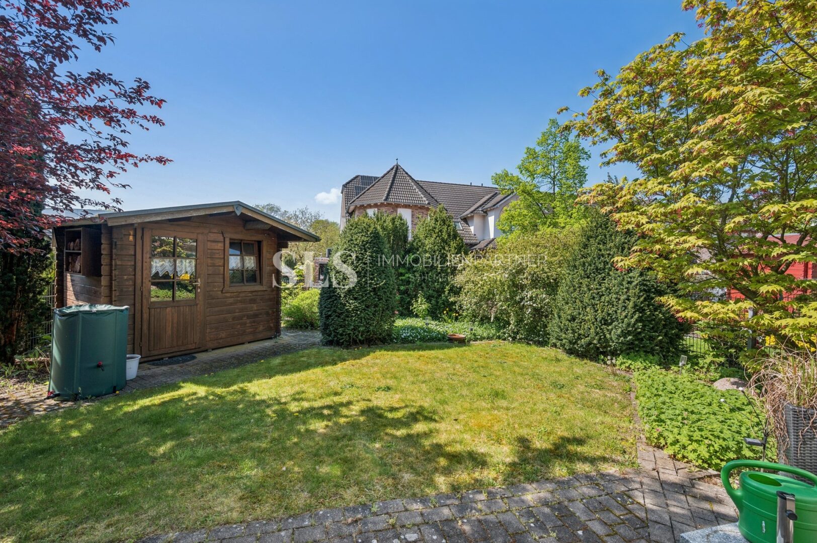 Auch im Außenbereich spielt dieses Haus seine Stärken konsequent aus. Die teilgeschlossene und überdachte Terrasse schafft eine wunderbar geschützte Übergangszone zwischen Innen und Außen und verlängert die Gartensaison erheblich. Ob Frühstück im Freien, entspannte Sommerabende oder ein geschützter Platz auch bei wechselhaftem Wetter – dieser Bereich ist ein echter Wohlfühlfaktor. Der Garten selbst präsentiert sich angenehm überschaubar, pflegeleicht und dennoch mit genug Raum für Familie, Freizeit und Erholung. Das vorhandene Gartenhaus ergänzt den Außenbereich sinnvoll und bietet praktische Unterbringungsmöglichkeiten für Geräte, Fahrräder oder saisonale Dinge. Der Außenzugang zum Garten ist dabei ein weiteres Detail, das im Alltag einfach funktioniert – sauber, praktisch, durchdacht.