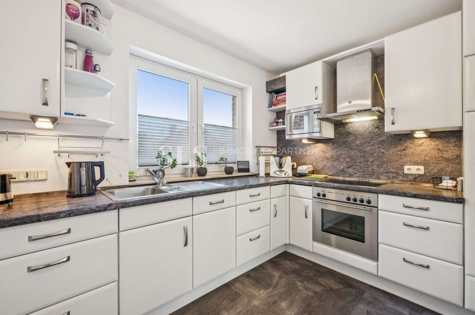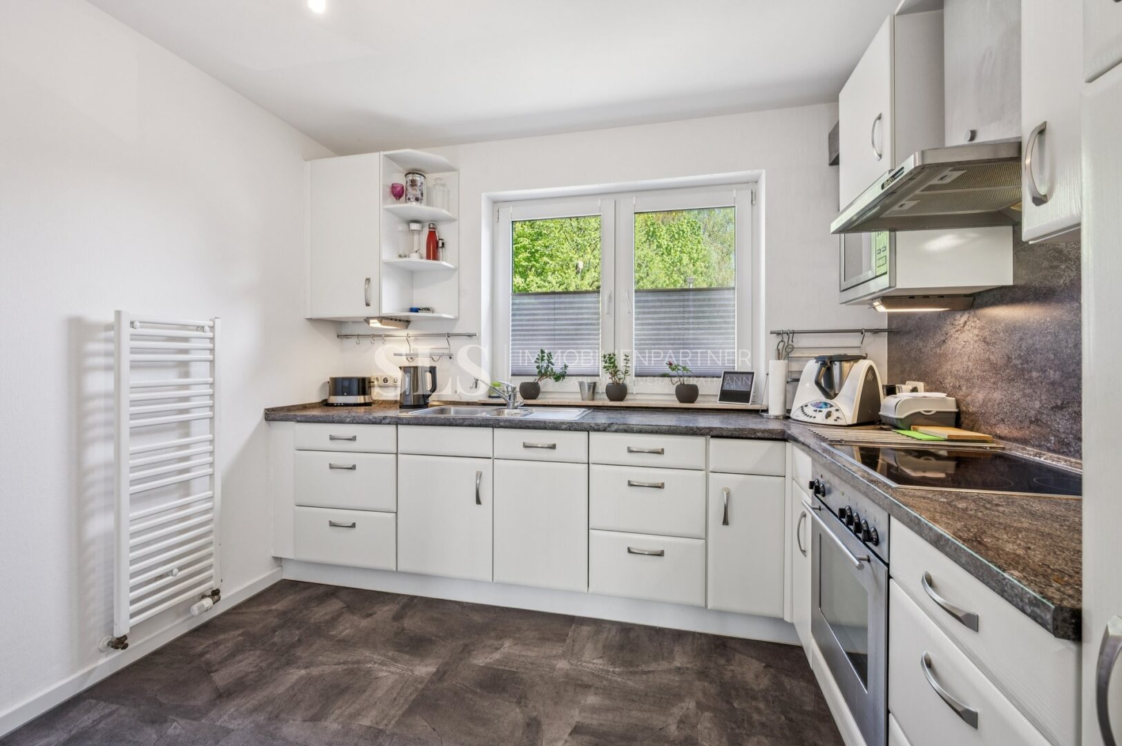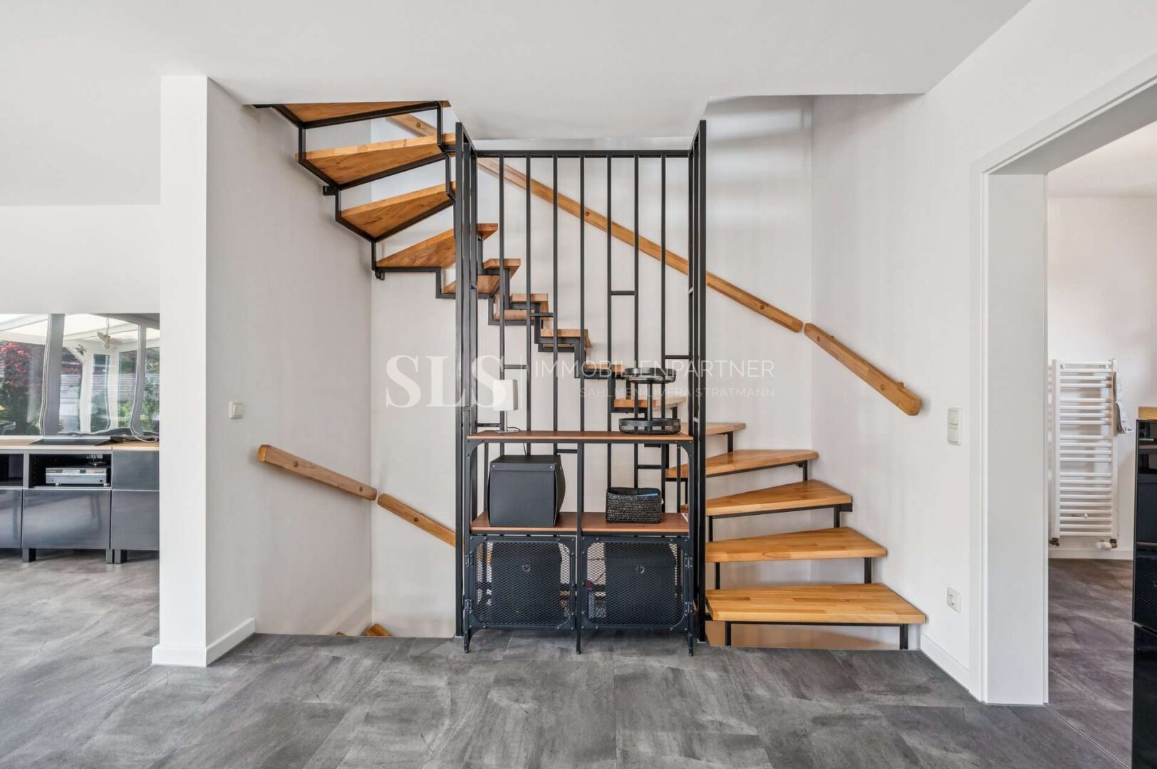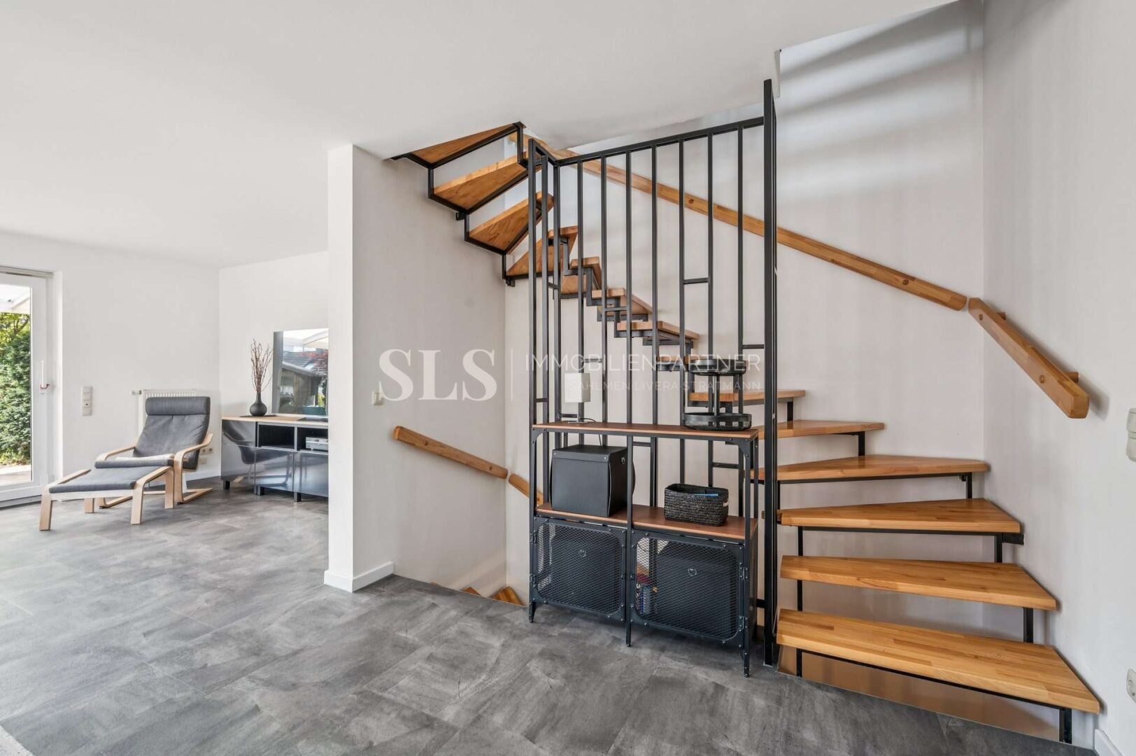 Die Küche fügt sich ideal in dieses Wohnkonzept ein und ist bereits mit einer kompletten Einbauküche ausgestattet. Das ist nicht nur praktisch, sondern macht den zeitnahen Einzug besonders angenehm. Überhaupt präsentiert sich die Immobilie modern und gepflegt, mit einer klaren, hellen Gestaltung und einem Innenausbau, der sofort anspricht. Besonders schön wirkt die neuwertige Buchentreppe, die sich vom Keller bis ins Dachgeschoss durchzieht und dem Haus eine warme, hochwertige und zugleich verbindende Note gibt. Solche Details sind es, die einem Haus Persönlichkeit geben und es von reinen Quadratmetern klar abheben.