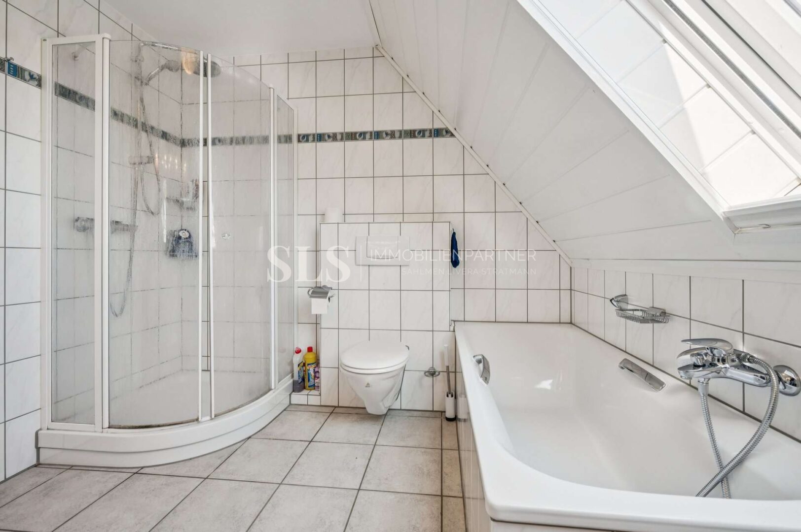 Im Obergeschoss stehen Ihnen gut geschnittene Zimmer sowie ein familiengerechtes Badezimmer mit Wanne und Dusche zur Verfügung. Ergänzt wird dies durch ein Gäste-WC, das den Alltag spürbar komfortabler macht. Das Dachstudio erweitert die Nutzbarkeit des Hauses nochmals deutlich und eignet sich ideal als Arbeitsbereich, Jugendzimmer, Hobbyraum oder persönlicher Rückzugsort. Gerade diese Ebene verleiht dem Haus eine zusätzliche Großzügigkeit, weil sie Raum für Ideen schafft, statt nur Flächen zu liefern.