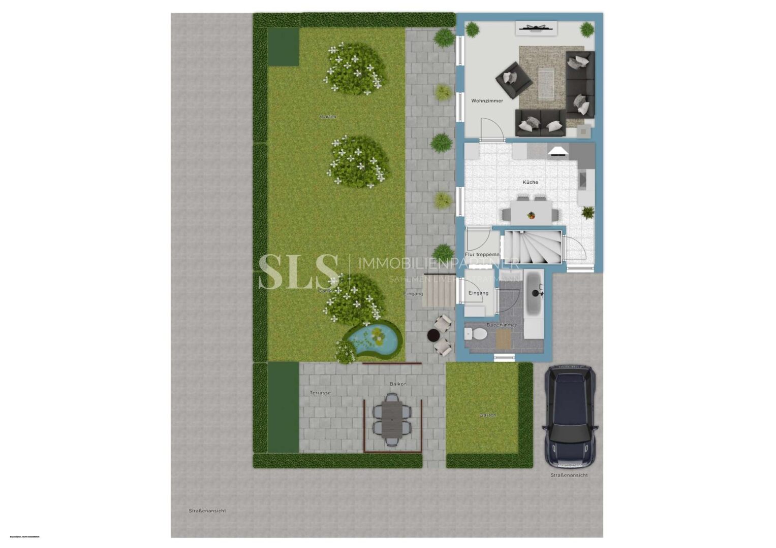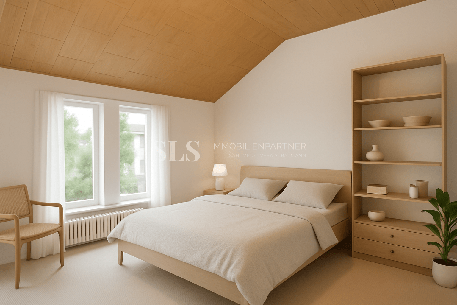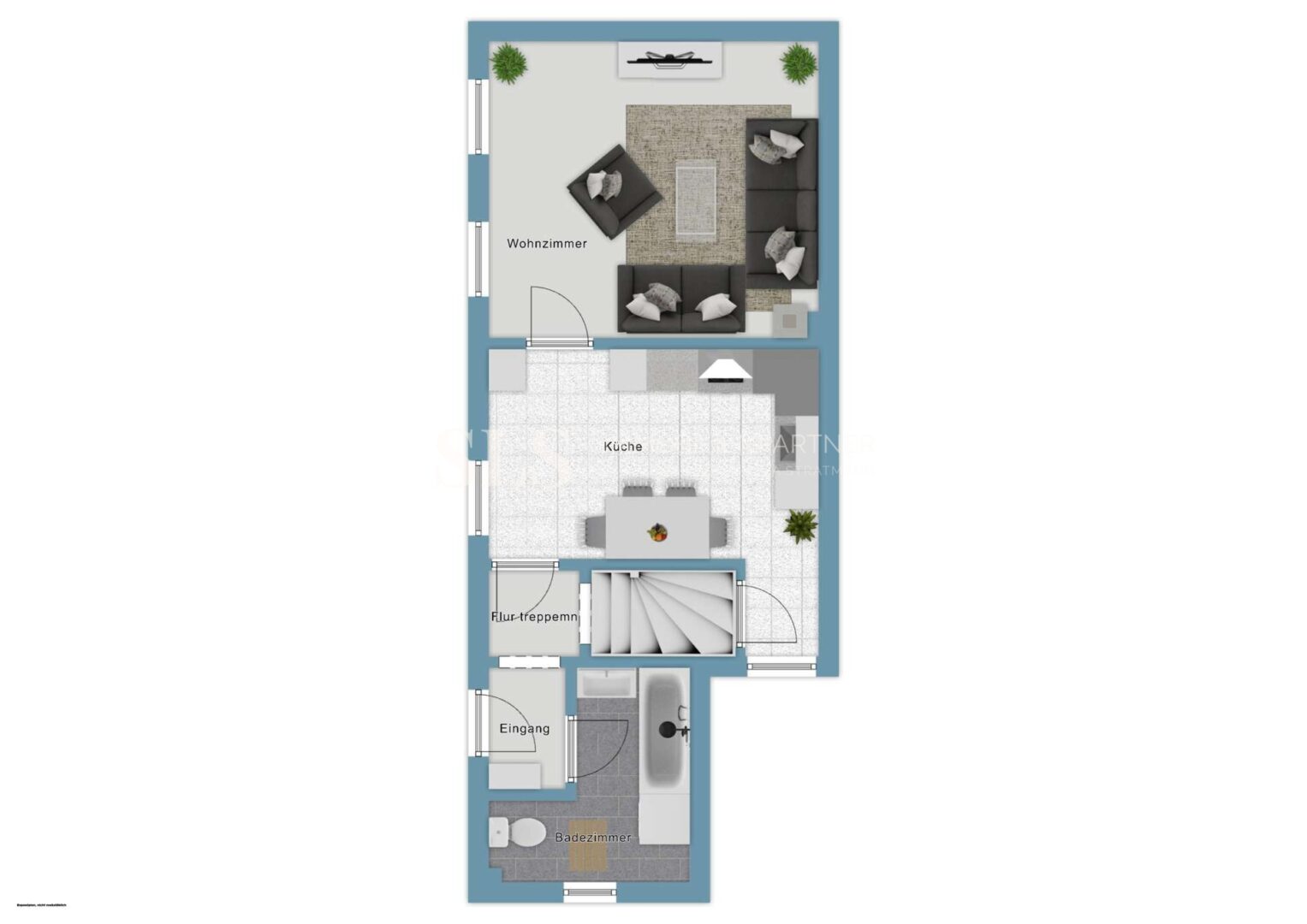 Da die Mieter die Veröffentlichung der Innenaufnahmen nicht gewünscht haben, zeigen die hier dargestellten KI-Visualisierungen beispielhaft die Raumstruktur und Anmutung der tatsächlichen Räume.