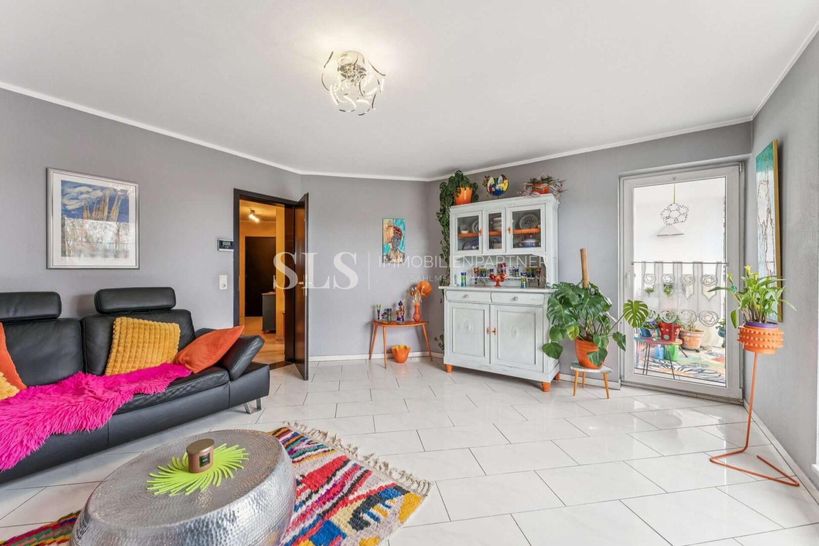 Der Wohnbereich öffnet sich zum sonnigen Südbalkon, der mit seinem freien Blick und der ruhigen Umgebung zu entspannten Stunden im Freien einlädt.