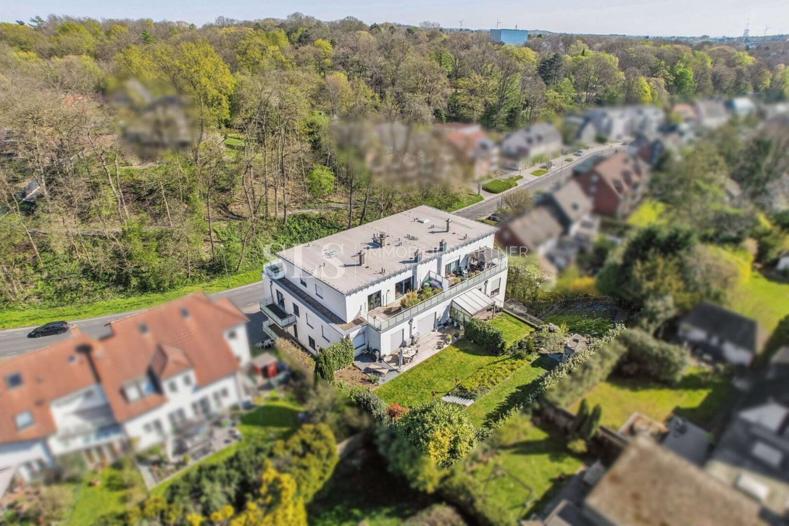 Diese Penthouse-Wohnung liegt im obersten Geschoss eines architektonisch anspruchsvoll gestalteten Mehrfamilienhauses, das 2014 in massiver Bauweise fertiggestellt wurde. Das Gebäude befindet sich im bevorzugten Westviertel von Recklinghausen, unmittelbar am Rosengarten, eingebettet in ein ruhiges, grünes Wohnumfeld mit gehobener Bebauungsstruktur. Die Mikrolage zählt zu den besten der Stadt – geprägt von stabilen Eigentümerstrukturen, gepflegten Nachbarschaften und einer hohen Nachfrage.
