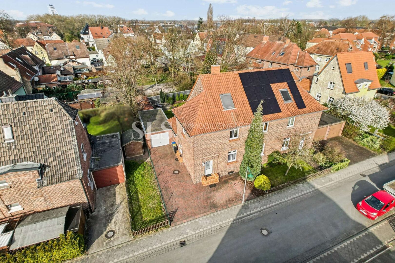 Diese Doppelhaushälfte befindet sich in der historischen Zechensiedlung Hervest in Dorsten. Die Siedlung entstand Anfang des 20. Jahrhunderts im Zusammenhang mit der Entwicklung der Zeche Fürst Leopold und gehört zu den prägenden Bergarbeitersiedlungen der Region. Die charakteristischen Backsteinhäuser und die großzügigen Gartengrundstücke verleihen dem Quartier bis heute einen besonderen, gewachsenen Siedlungscharakter. Aufgrund ihrer städtebaulichen und historischen Bedeutung steht die Siedlung unter Denkmalschutz.