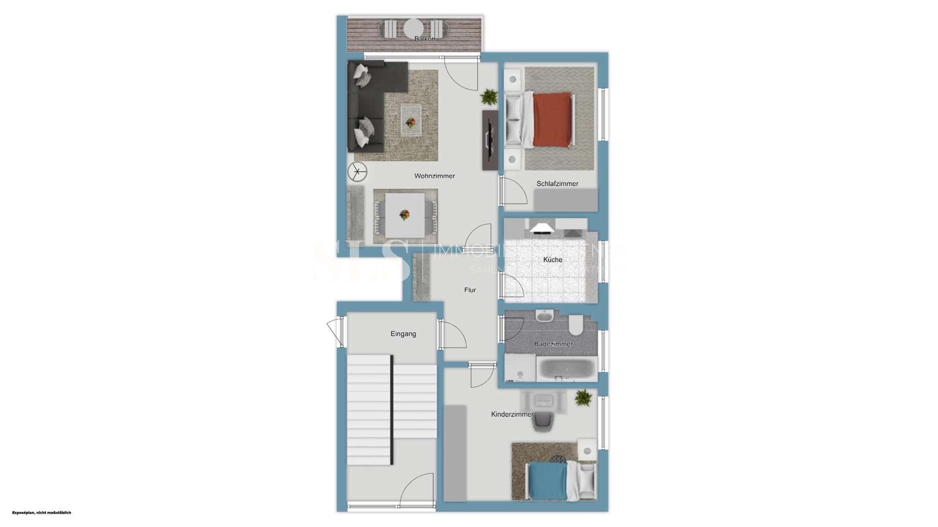 Besonders hervorzuheben ist der nahezu barrierefreie Zugang zur Wohnung – lediglich zwei Stufen sind zu überwinden – was den Wohnkomfort zusätzlich erhöht. Der angeschlossene Balkon mit ca. 6 m² erweitert den Wohnraum ins Freie und lädt zu entspannten Momenten im eigenen Rückzugsbereich ein.